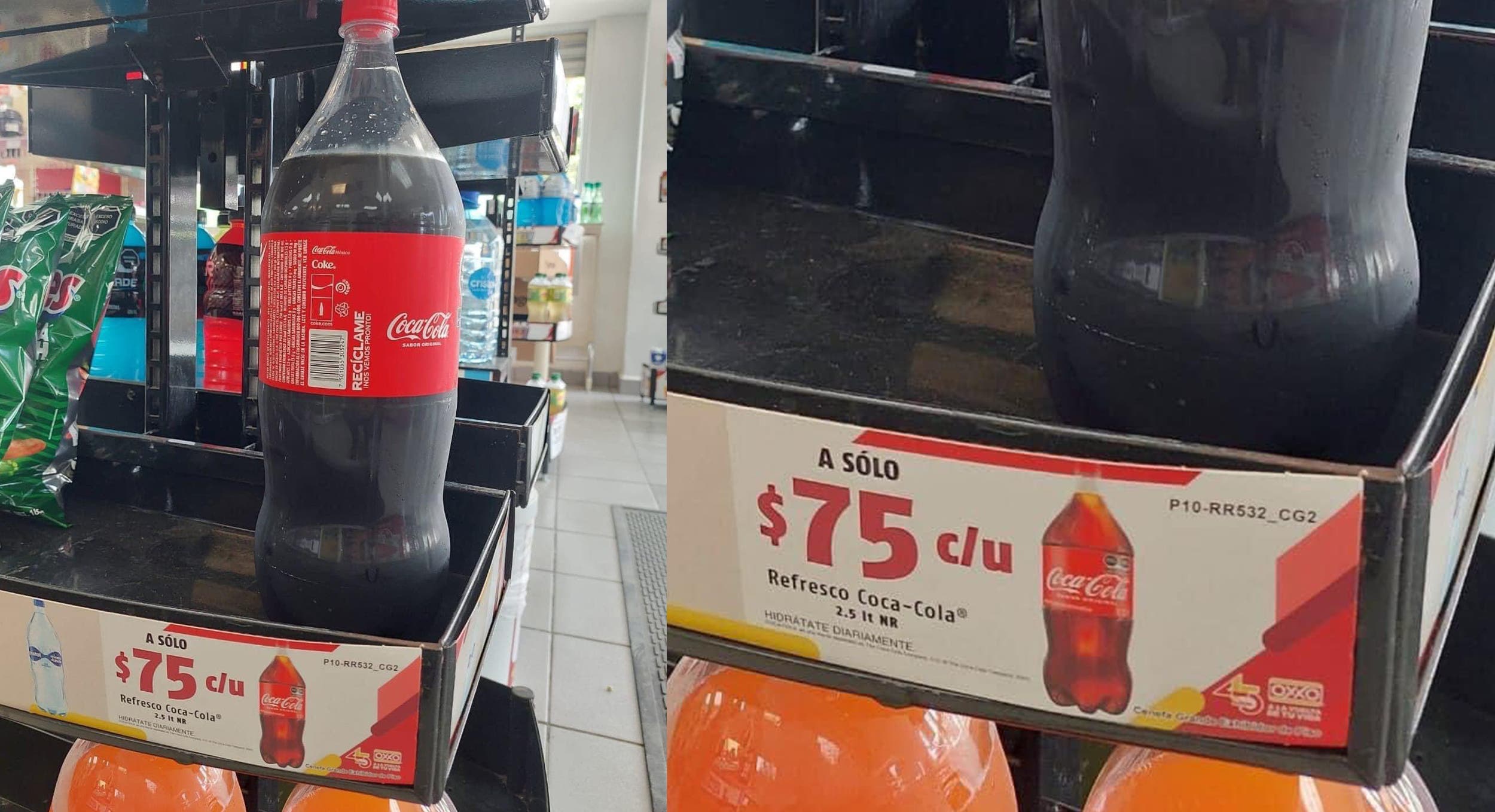 En redes sociales recientemente circuló una imagen de un aparador de una cadena de minisúperes, en donde se aprecia una Coca-Cola de 2.5 litros a un precio de 75 pesos, situación que alertó a los consumidores.
