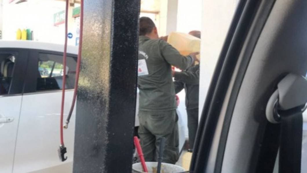 Entrevistados al respecto, los oficiales aseguran que vienen hasta esta gasolinera porque en otras no les pueden despachar.