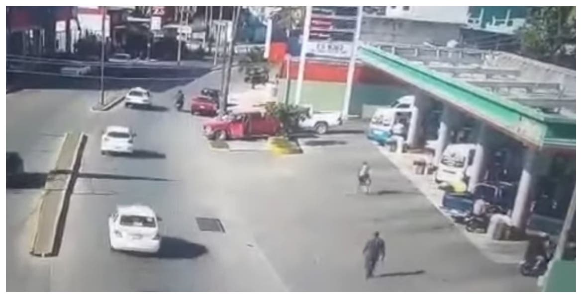 A través de redes sociales, circula un video del momento de los hechos, en el que se muestra la camioneta del mando policiaco en la salida de una gasolinera.