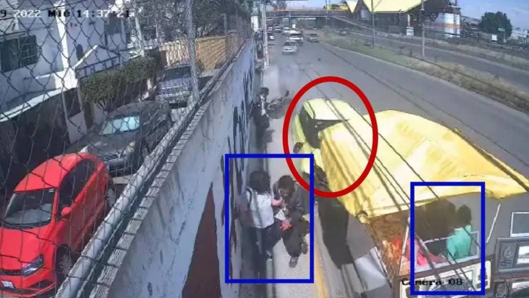 En otra de las grabaciones se observa que había personas caminando por la banqueta y comprando en el puesto siniestrado en el momento que el vehículo amarillo se estampa a gran velocidad, hiriendo a varios transeúntes.