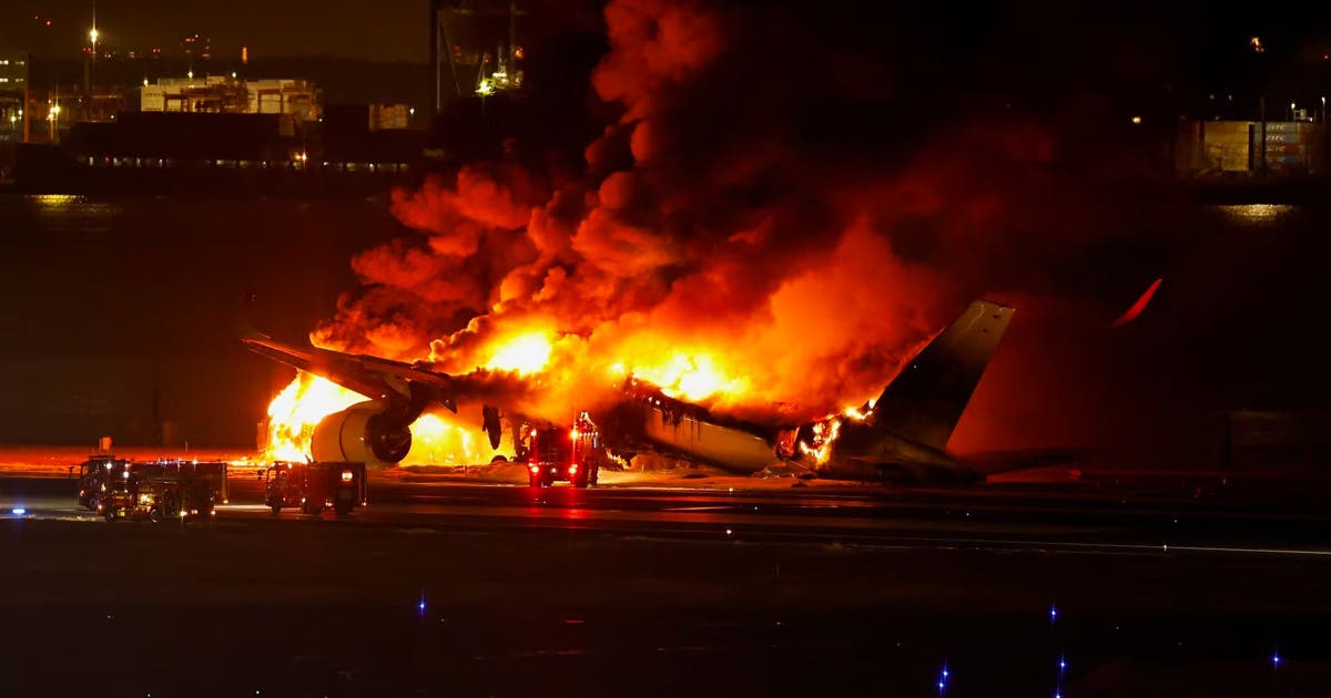 | URGENTE: Un avión de Japan Airlines chocó contra una aeronave militar y se incendia con 400 pasajeros a bordo en el aeropuerto de Tokio. pic.twitter.com/g37zmcwDSj