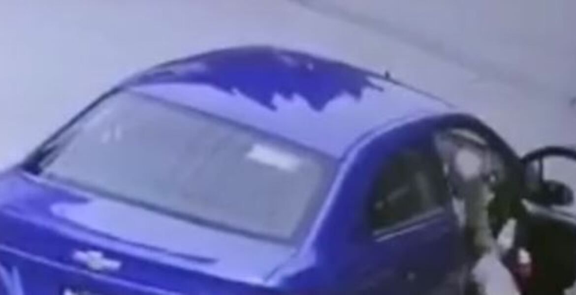 Se observa en el video que el hombre intenta dar algunos pasos y cae de espaldas al piso, a la vez que el auto se marcha, el conductor avanzó aún con la puerta abierta y en movimiento la cierra.