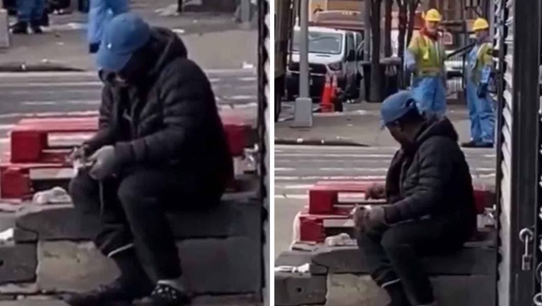 ¡Alerta! Imágenes sensibles Impactante momento: un hombre en situación de calle en Nueva York se come una rata pic.twitter.com/8aIcRz7T29