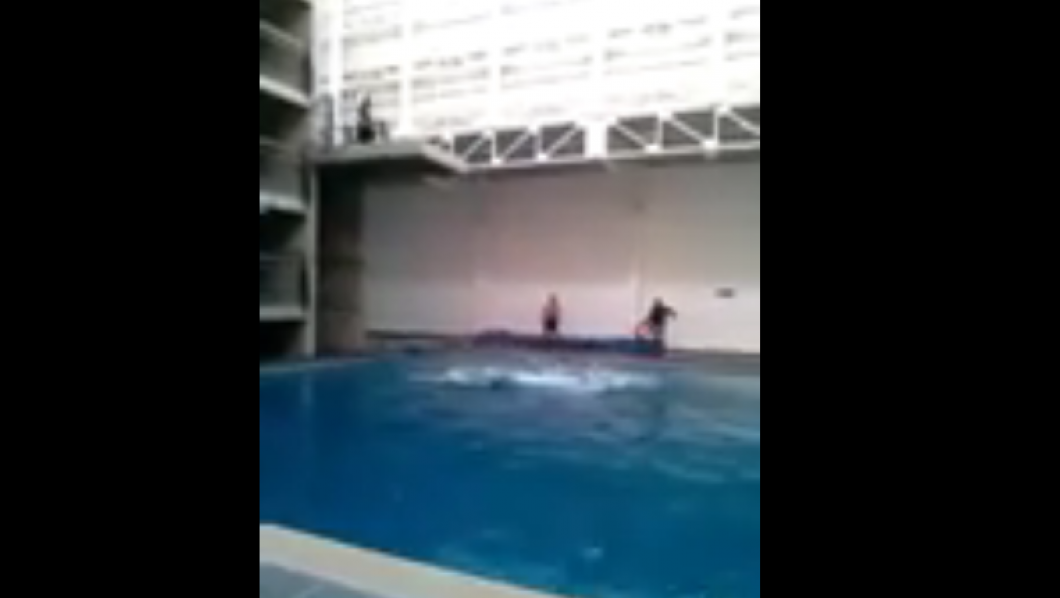 En el video, con duración de menos de un minuto, se ve el momento en que Gámez Villegas se lanza desde el trampolín a la alberca.