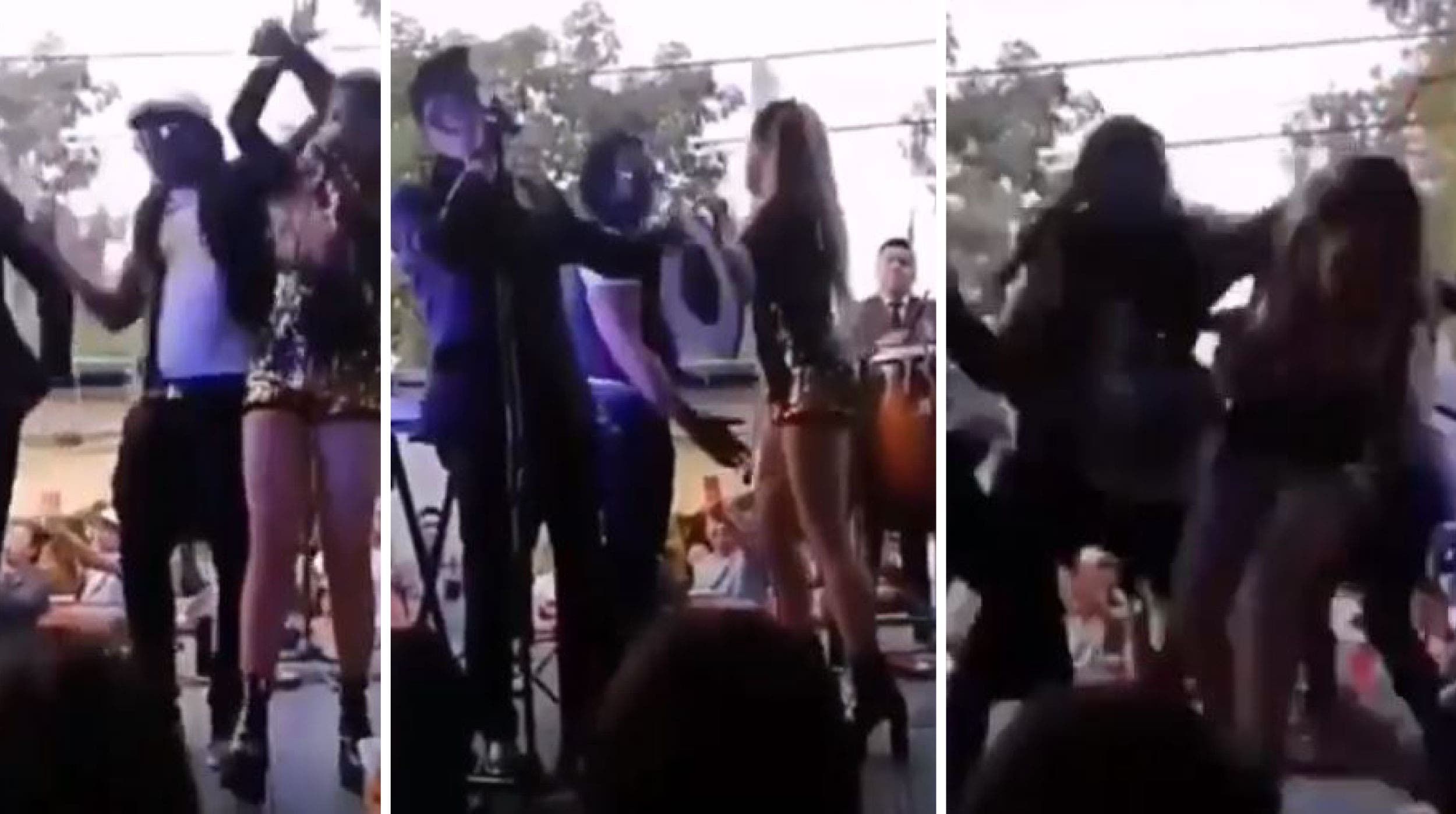 Todo quedo grabado en diferentes videos que de inmediato se hicieron virales en redes sociales, donde se puede ver como el susodicho se encuentra en el escenario, y se acerca para tocarle la cabeza a la cantante, por lo que ella se voltea y le da una nalgada; sin embargo, el hombre presuntamente en estado de ebriedad se voltea y toca la parte intima de la mujer.