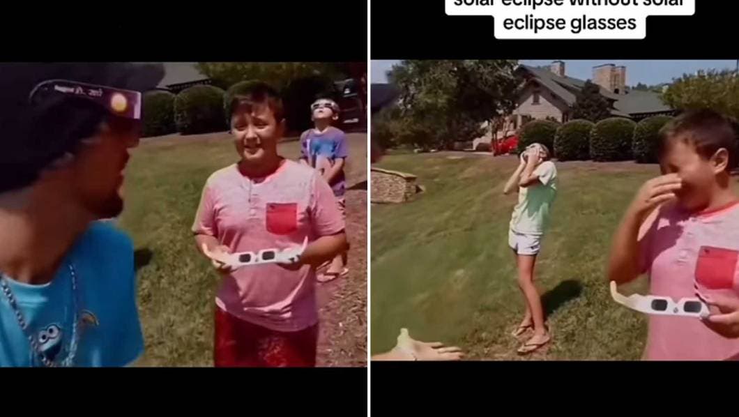 El video muestra a todos en un jardín con los respectivos lentes, admirando el fenómeno; el padre hablaba a la cámara sobre lo que estaba sucediendo en la Tierra y fue en ese momento cuando uno de sus hijos se acercó para decirle: "papi no puedo ver nada".
