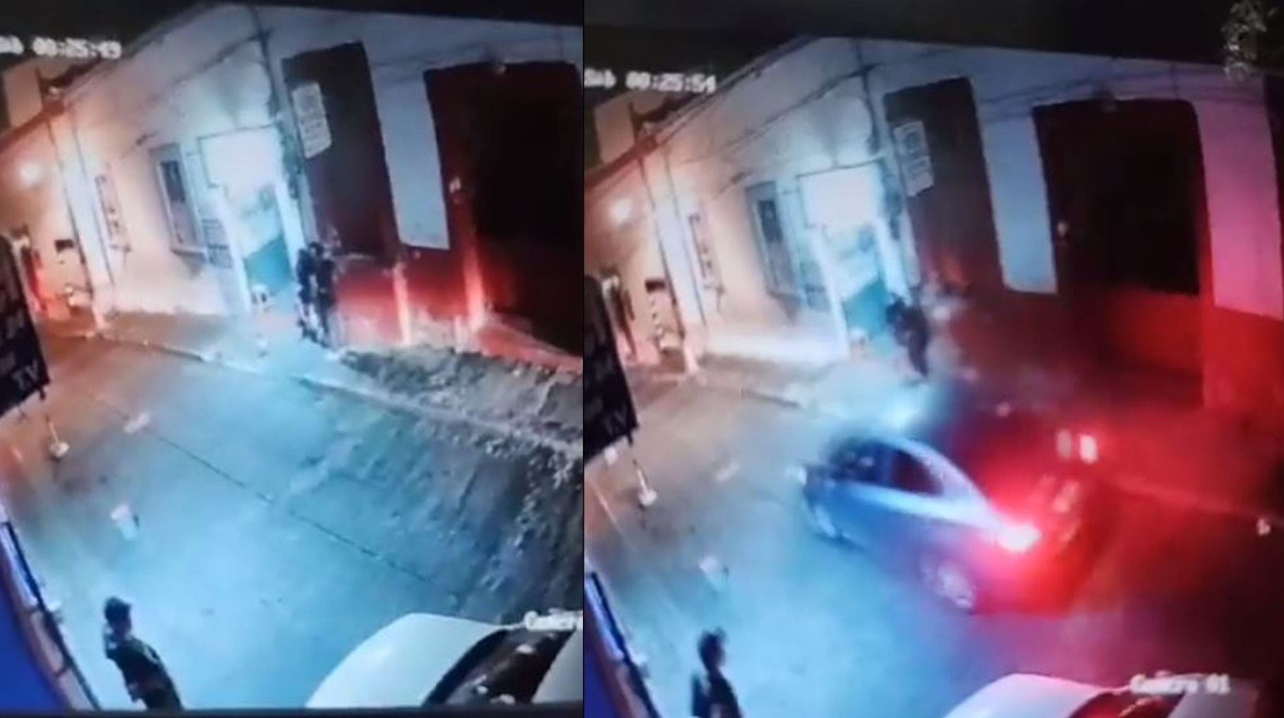 De acuerdo con un video que fue compartido en redes sociales, un auto gris se detiene junto a las personas que se encuentran a fuera de una casa de huéspedes, para disparar contra ellas y darse a la fuga.