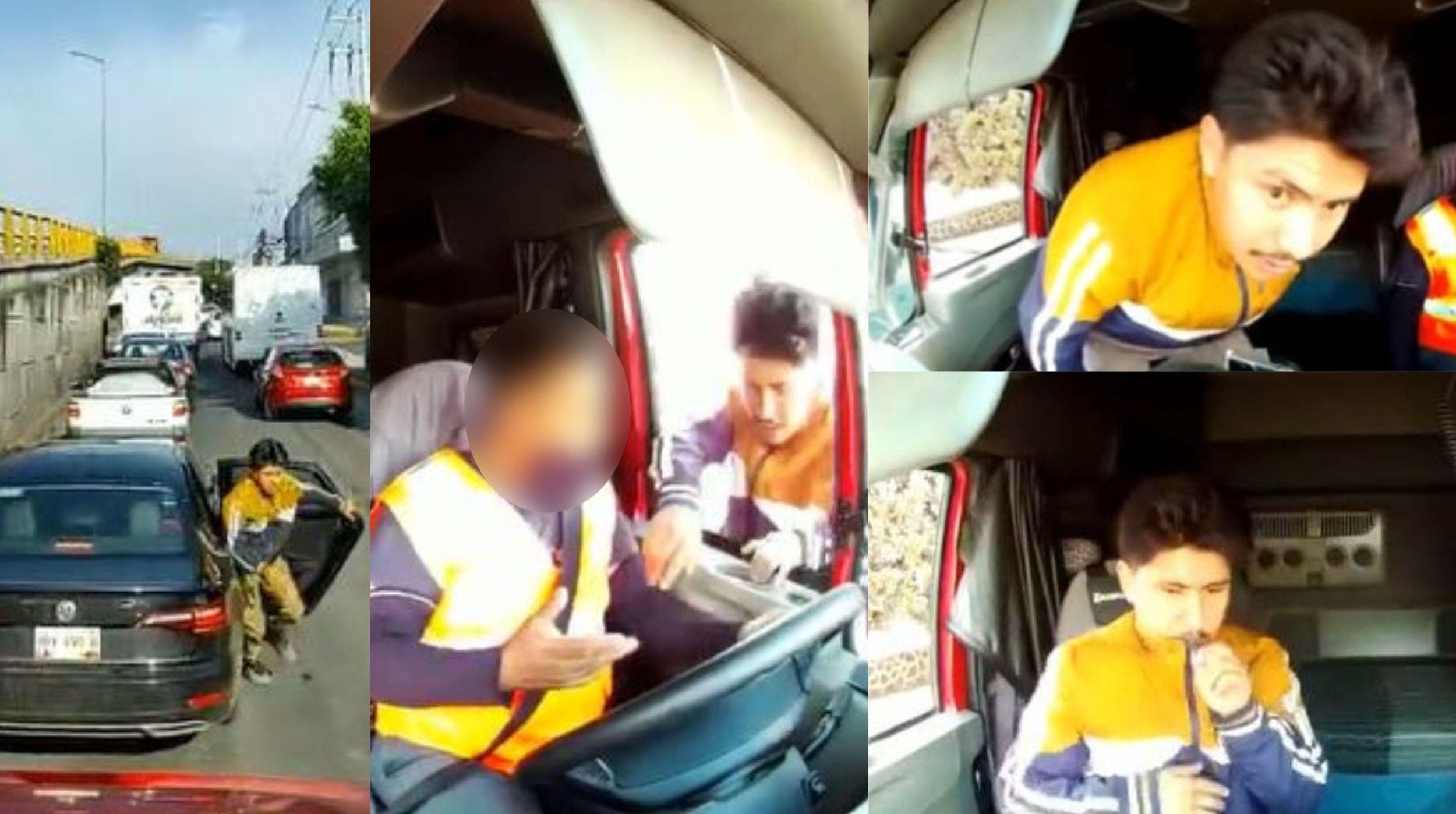 En ese momento, en el video se aprecia que un Jetta color gris se le cierra al operador del tractocamión, auto del que desciende un sujeto que camina hacia la puerta del lado del conductor de la pesada unidad y amenaza al chofer para que lo deje subir, o si no, le dará un balazo.Ante la amenaza, el conductor del tractocamión deja ingresar al delincuente, quien se sienta en el lugar del copiloto y la unidad continúa avanzando. Ahí termina el video.
