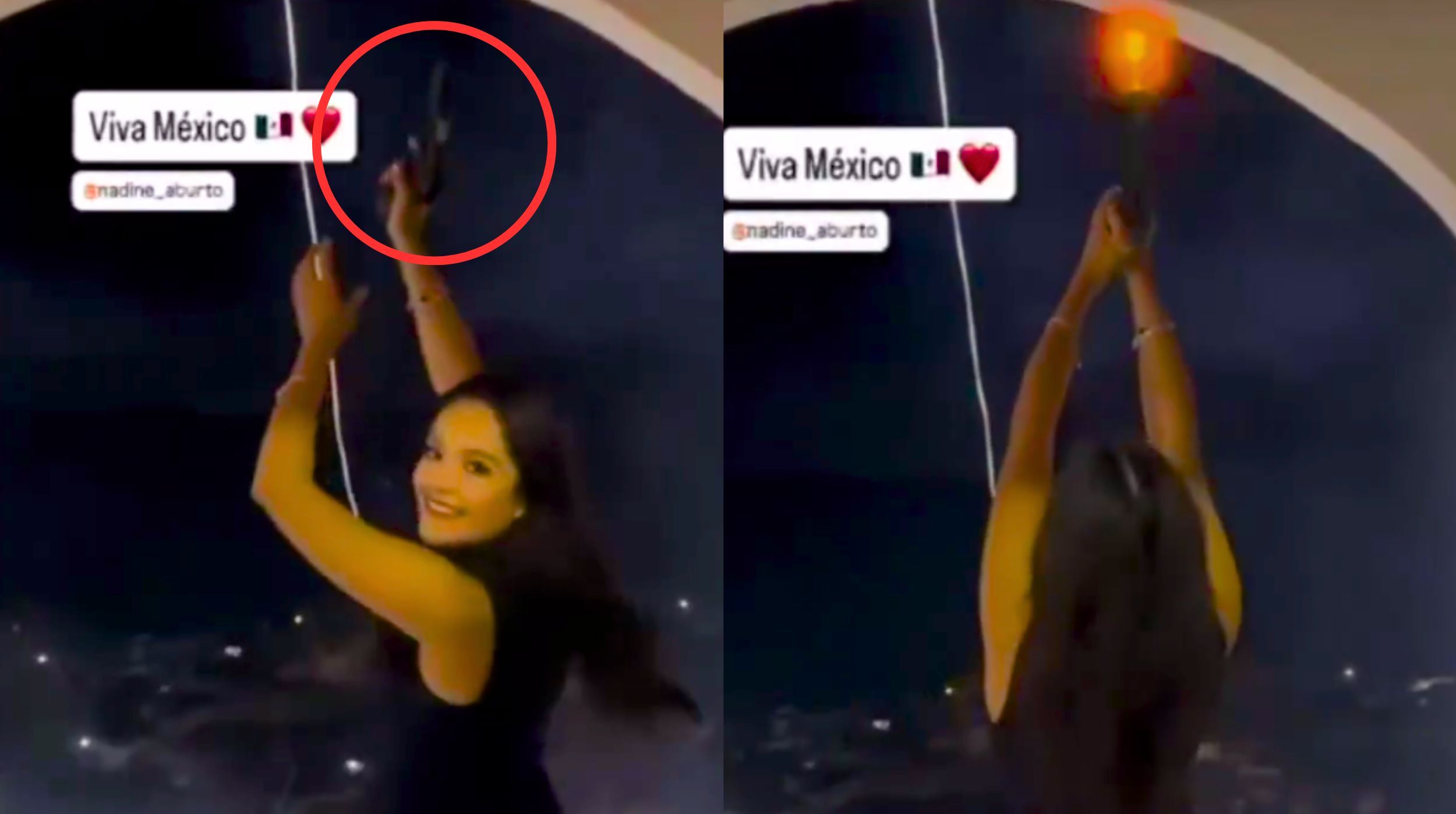 En uno de los videos se aprecia a Nadine Aburto, vestida con blusa negra y jeans, disparando en al menos diez ocasiones mientras se encuentra junto a una campana del inmueble. Posteriormente, la joven mira hacia la cámara antes de que la grabación se corte. Otro de los materiales muestra al hijo del alcalde accionando un arma.