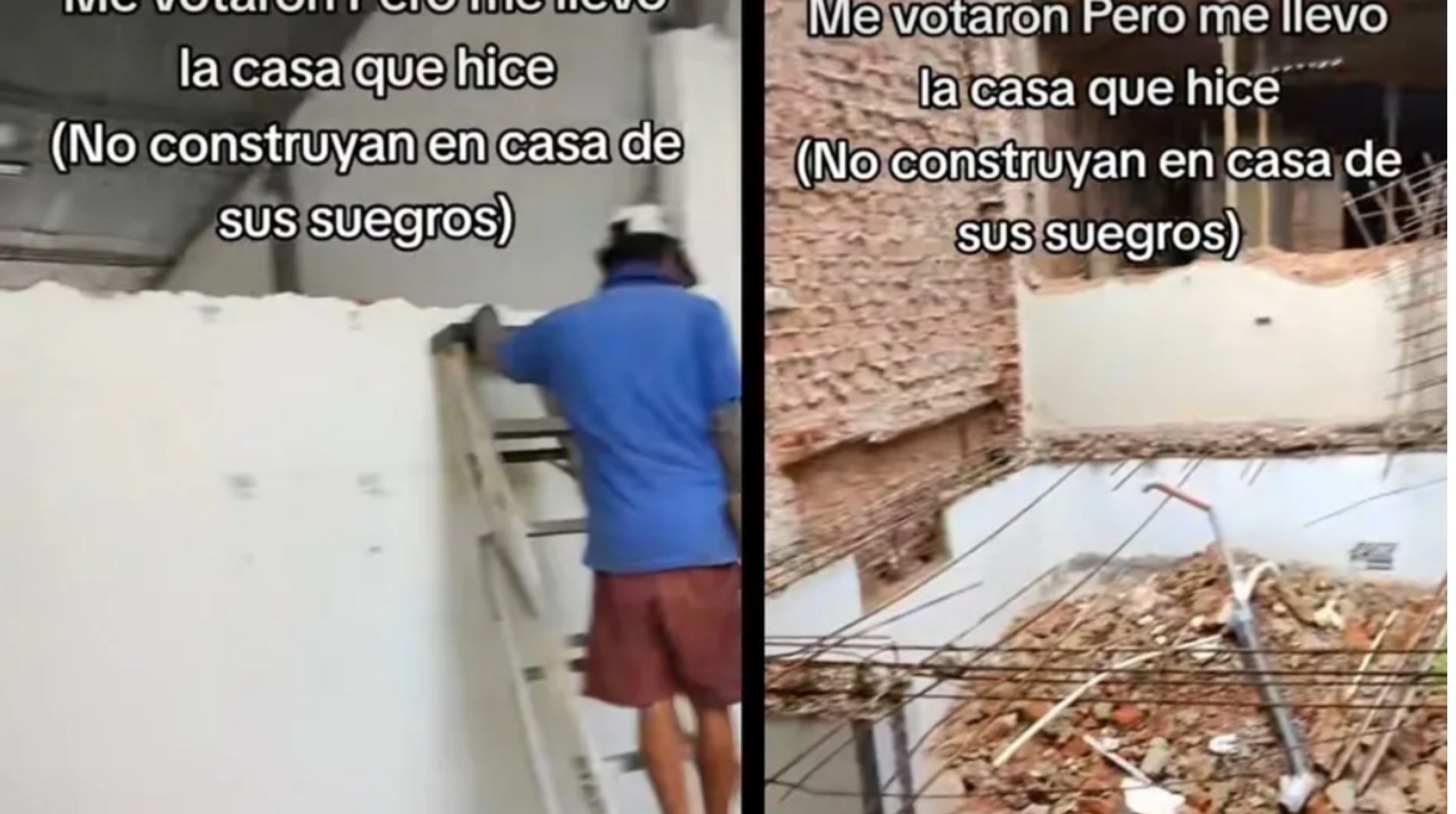 El video que muestra el momento exacto en el que el hombre demuele una pared de la casa en construcción fue compartida inicialmente por la cuenta de TikTok @.Jano055. En la descripción del video, se explica que el sujeto destruirá la vivienda como una forma de venganza debido a que su pareja terminó la relación y no estaba dispuesta a dejarle la propiedad a los padres del hombre. La frase que acompaña el clip dice: "Me botaron, pero me llevo la casa que hice. No construyan en la casa de sus suegros".