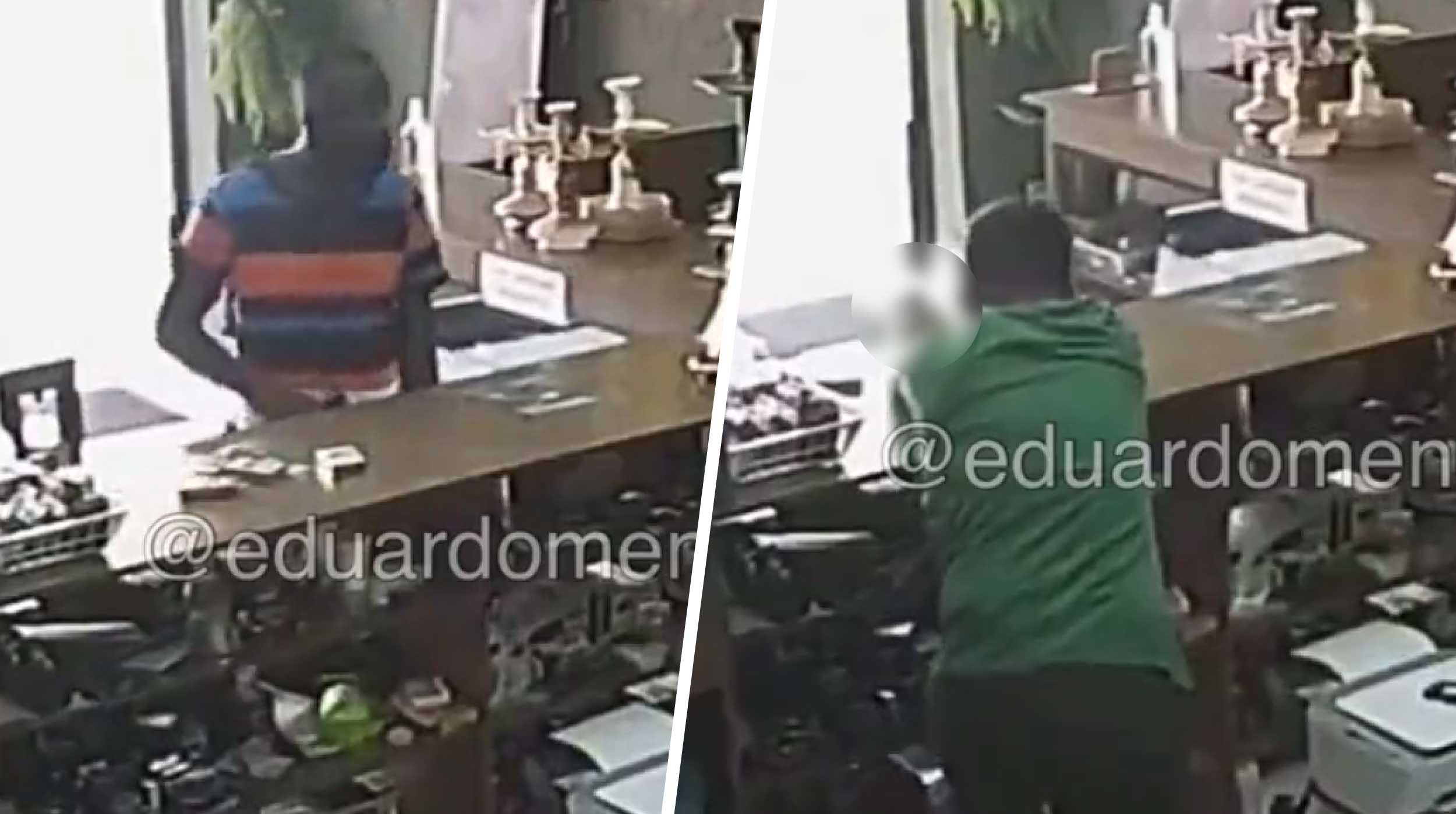 El momento quedó captado en un video que ya se hizo viral en redes sociales, donde se puede ver como el asaltante apunta a las víctimas para que vaciaran la caja registradora, y uno de los trabajadores se arrastra a gatas para quedar cerca del mostrador donde el ladrón estaba esperando el dinero.