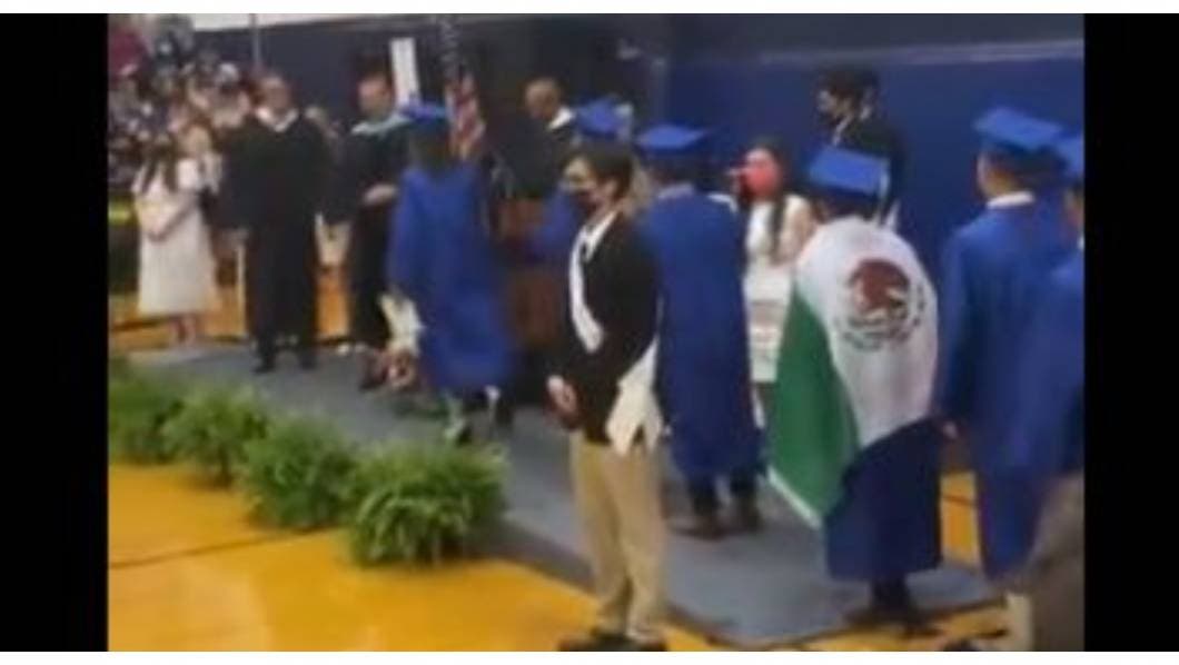 Niegan diploma a alumno que portaba bandera de México en Estados Unidos, este hecho fue captado en video y ha provocado toda clase de reacciones en redes sociales.