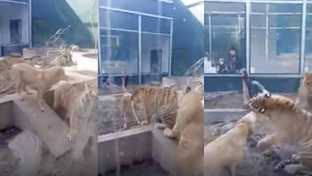 En la imágenes se observa que el lomito entra a una jaula donde se encuentran dos enormes tigres y comienza a morderlos, el clip causó gran impacto pues en el momento se temía por la vida del perrito.