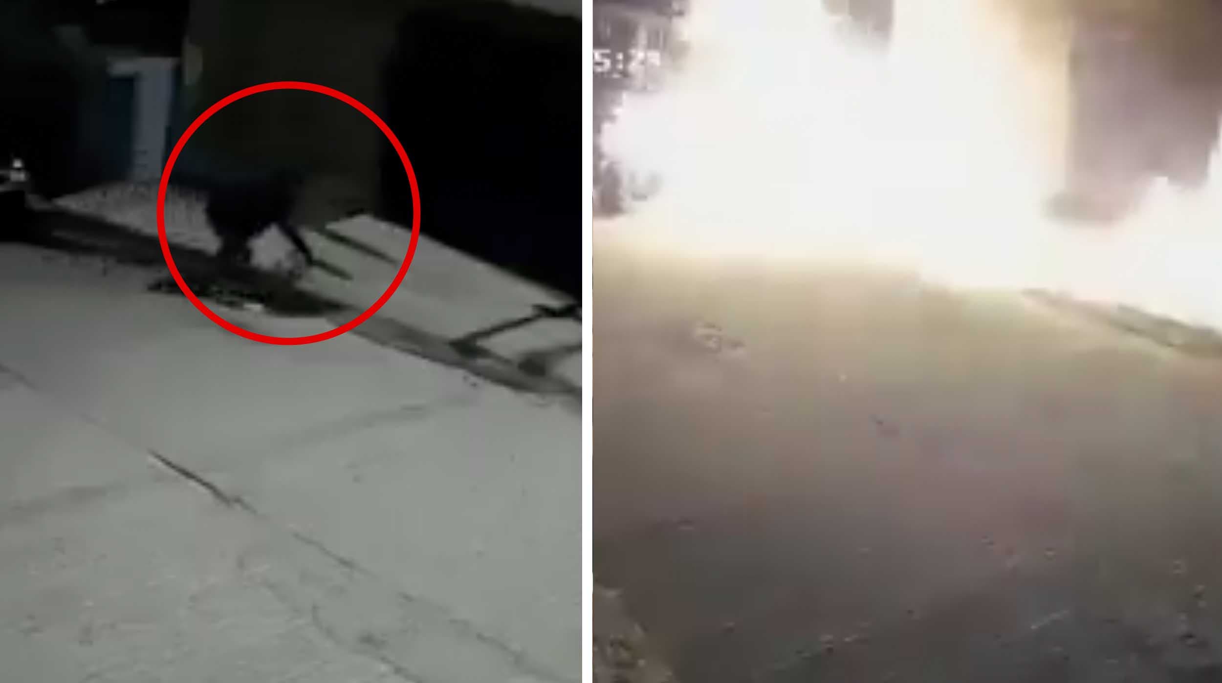 En redes sociales circula un video captado por cámaras de videovigilancia, en el que se observa al presunto responsable rociar combustible desde la entrada de una vivienda hasta el automóvil. Minutos después, el sujeto prende fuego y huye del lugar, mientras las llamas se expanden rápidamente.
