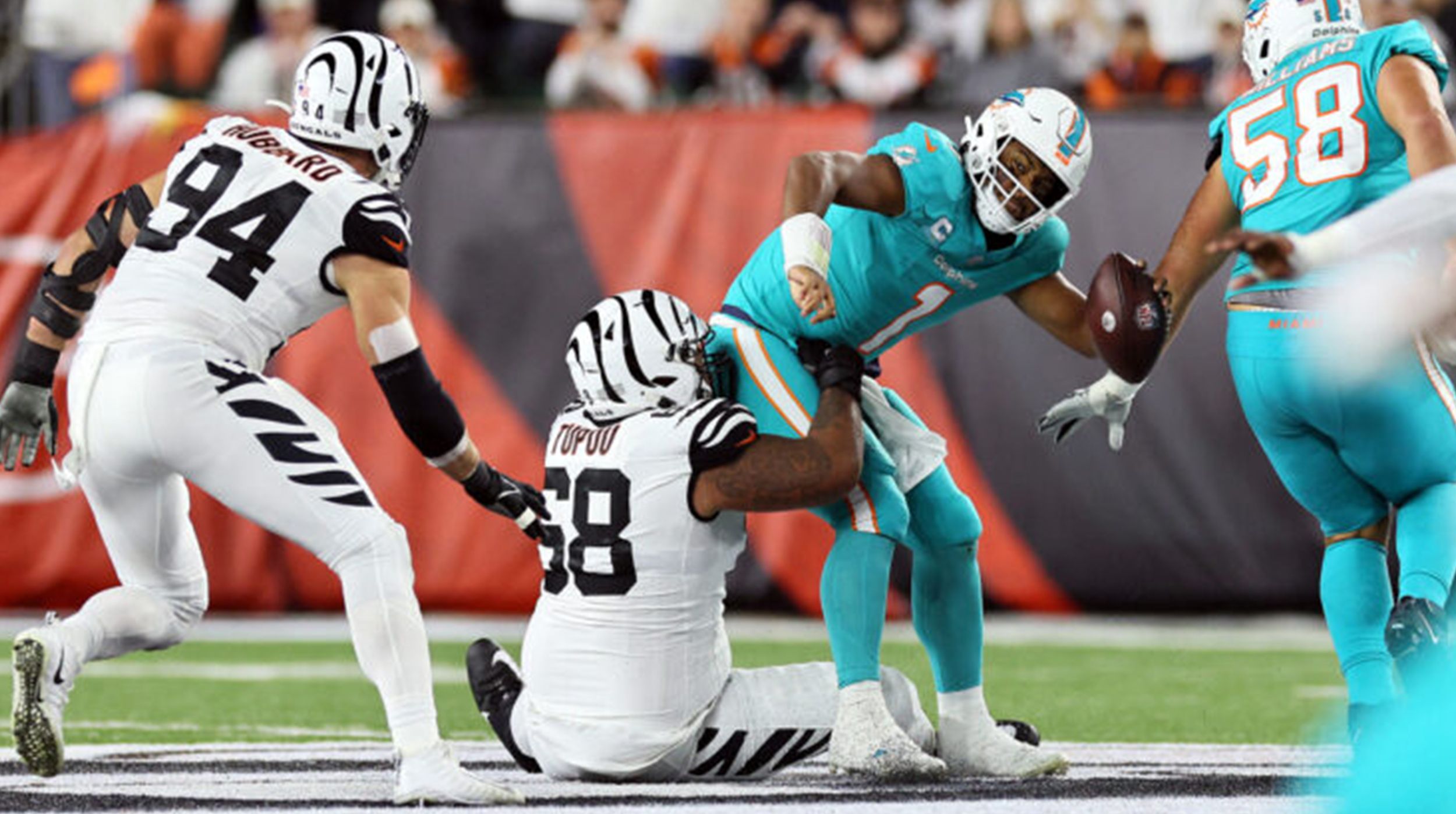 Los hecho ocurrieron durante el enfrentamiento contra Cincinnati Bengals, durante uno de los movimientos, el mariscal de campo fue frenado por Josh Tupou, quien lo mandó al suelo.
