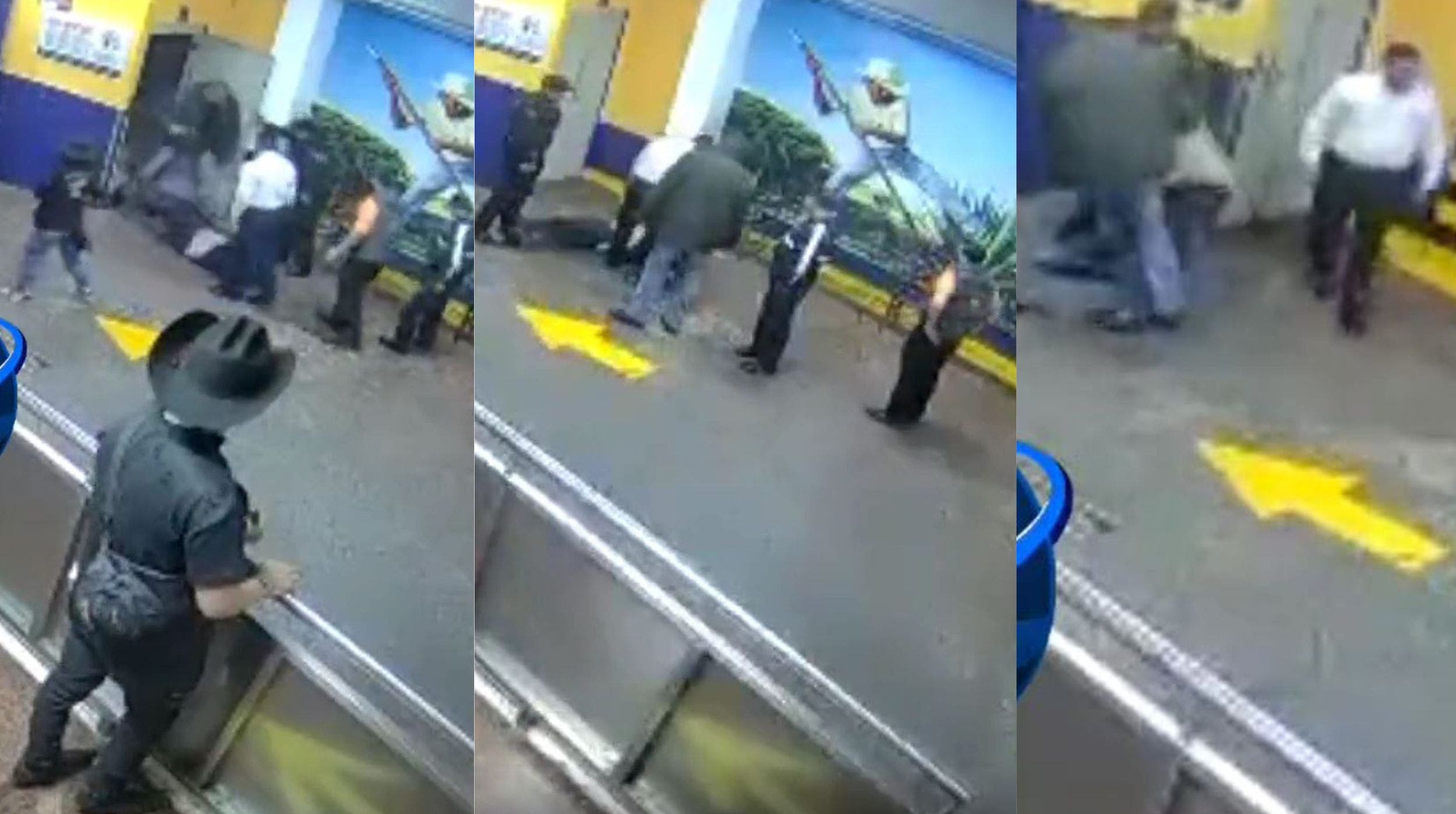 De acuerdo con lo que se puede ver en el video de casi 2 minutos a partir de las 9:03:33 p.m., el sujeto fue tirado sin que respondiera, por lo menos se pueden ver tres hombres que se acercan en repetidas ocasiones como si buscaran alguna reacción del cliente