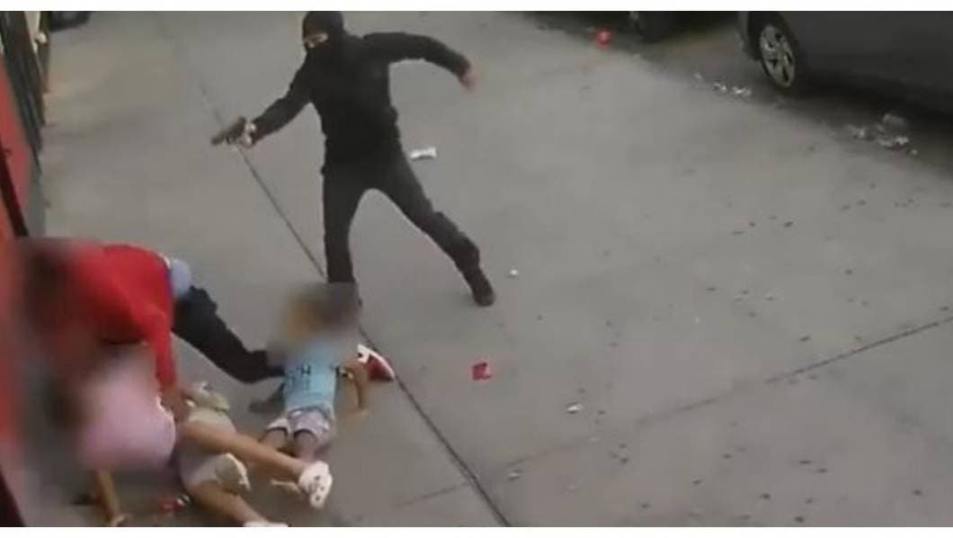 El incidente ocurrió en el barrio de Bronx, donde se observa a un pistolero corriendo tras un sujeto, quien choca con dos inocentes niñas pero le siguen haciendo disparos que rozan a las pequeñitas.