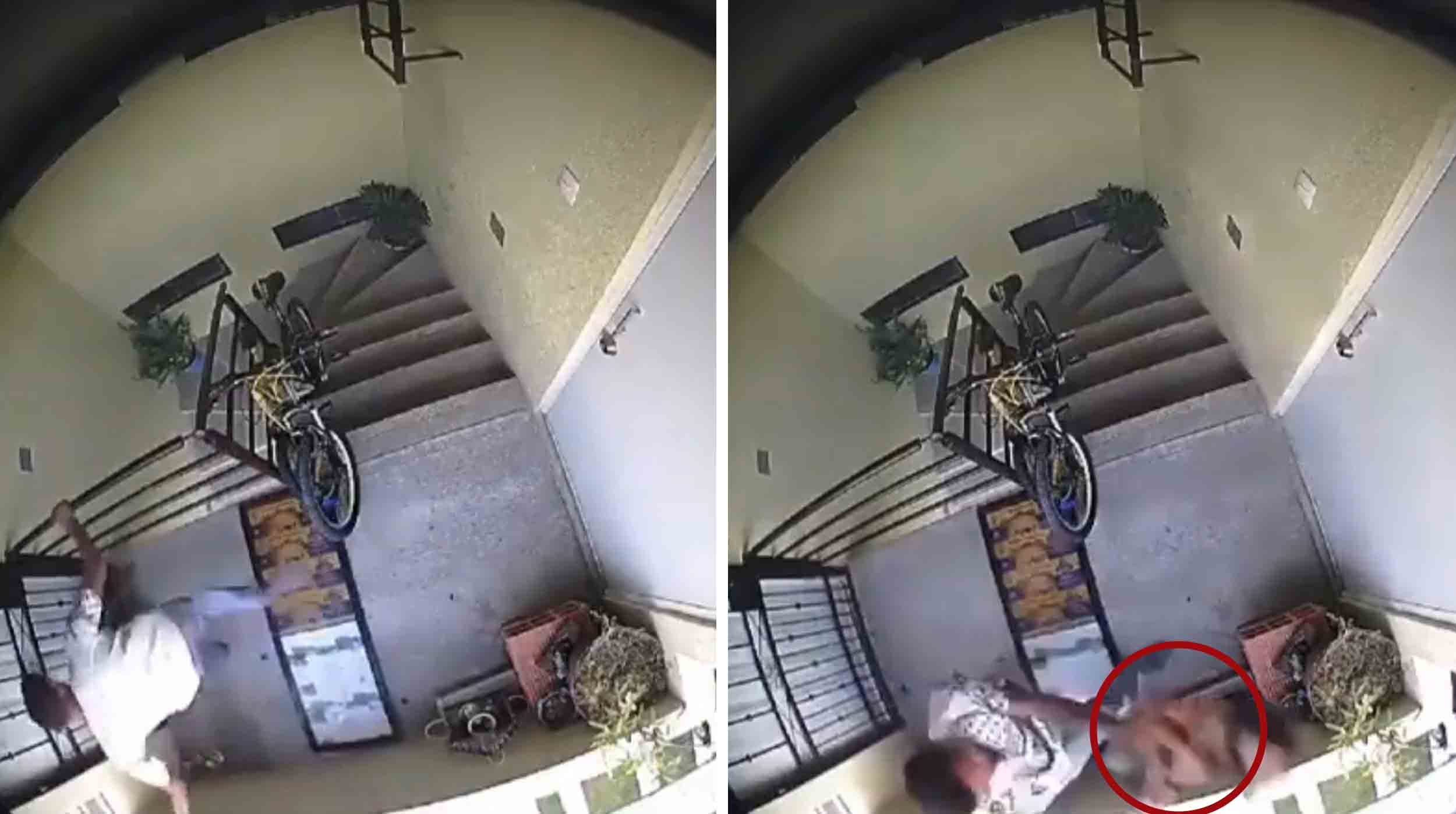 #Viral | Así captaron a un sujeto golpeando a un lomito; posteriormente lo arrojó de un segundo piso.