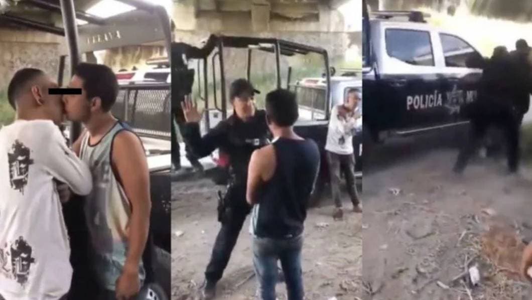 “Métanse la lengua; bésense bien; órale hijos de su p´ta madre o los mato”, les grita uno de los uniformados mientras los demás ríen y graban.