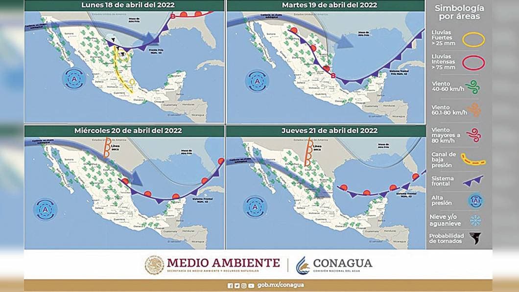 En cuanto al miércoles y jueves, se pronostica cielo despejado a medio nublado, con posibles chubascos dispersos acompañados de actividad eléctrica, principalmente el miércoles, mientras que el jueves, las condiciones serán más estables.