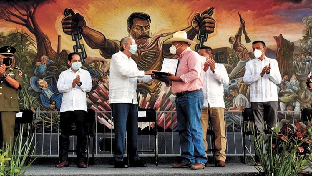 Durante la ceremonia, se hizo entrega de la medalla “Emiliano Zapata” a Alberto Trujillo Campos en el rubro de publicaciones e investigaciones en materia agropecuaria; Andrés Soriano Molina al mérito agrario; Omar Zambrano Hernández en el rubro de industrialización y exportación; así como un reconocimiento Post Mortem a Rogelio Torres Ortega en el rubro de producción.