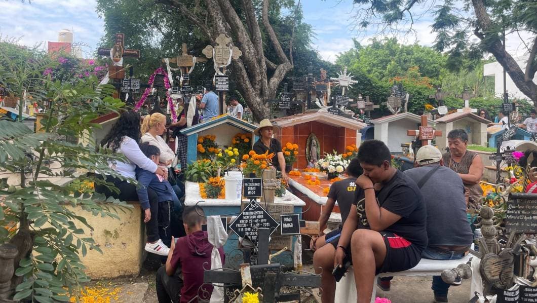 Durante todo el día cientos de personas se reunieron en el camposanto para llevar flores y veladoras a las tumbas que fueron arregladas con flores de cempasúchil, terciopelo y nube.