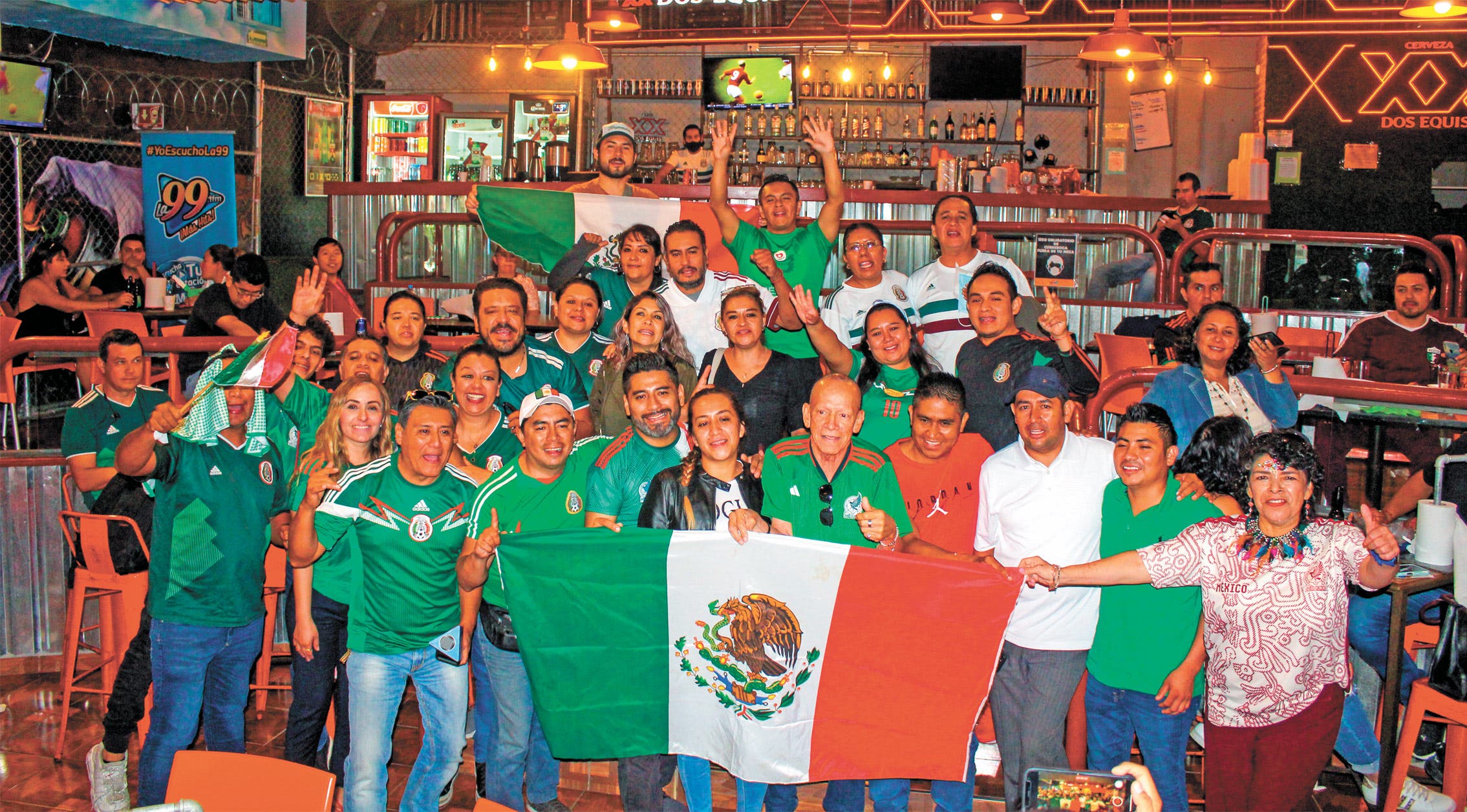 Con alegría y pasión se llevó cabo la Fiesta Mundialista de la 99, donde los radioescuchas pudieron disfrutar del partido México – Polonia, acompañado de botanas, bebidas y un increíble ambiente con nuestros amigos de Wings City y Cencel Distribuidor Autorizado Telcel. Los invitados disfrutaron de un partido cardiaco en el que nuestra selección puso a todos con los pelos de punta. El locutor Miguel Barrientos acompañó a los asistentes.