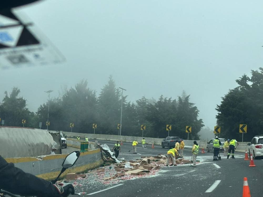 Hasta el momento no se reportan personas lesionadas, pero el incidente mantiene afectada la circulación en uno de los tramos más transitados de la autopista durante el fin de semana.