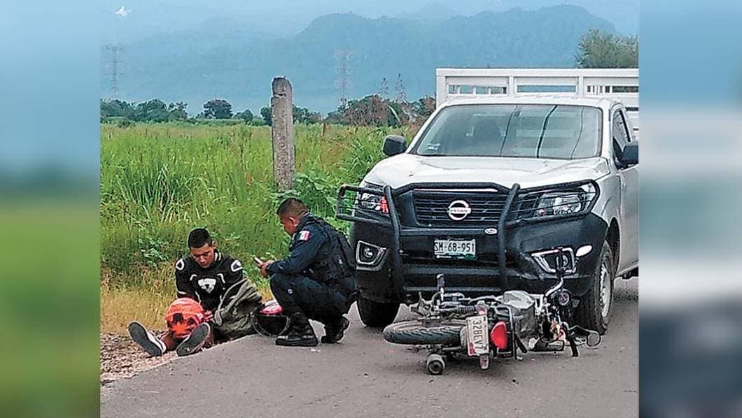 Cuautla, MORELOS.- Un motociclista resultó herido tras impactarse de frente contra una camioneta, cuando circulaban por el camino local Ex Hacienda El Hospital-Cocoyoc, a la altura de la sub estación de luz, en Cuautla.