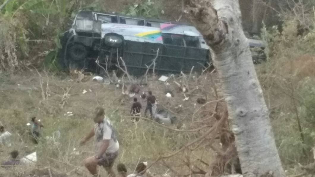 El golpe dejó inconsciente al chofer del autobús número económico 02737, por lo cual éste se salió del camino y se desbarrancó.