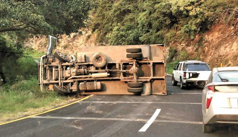 Yautepec, MORELOS.- Una aparatosa volcadura se registró la tarde de ayer sobre la carretera Cuautla-Cuernavaca, a la altura del Cañón de Lobos, luego de que un camión de carga quedó recostado en una de las últimas curvas con dirección a Cuernavaca.