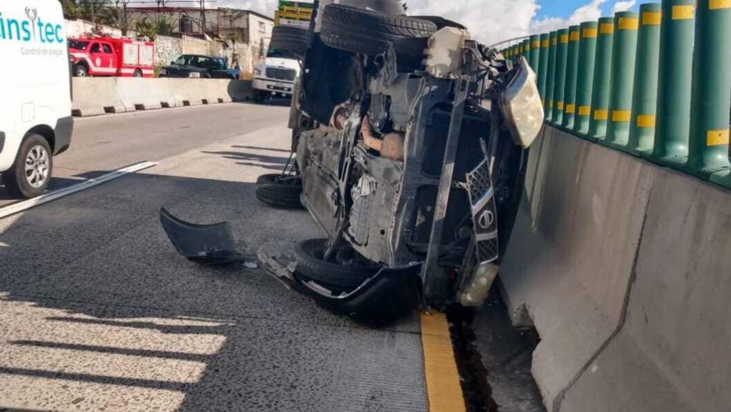 Esta mañana una camioneta volcó tras ser impactada por un Pullman de Morelos en el Paso Express.