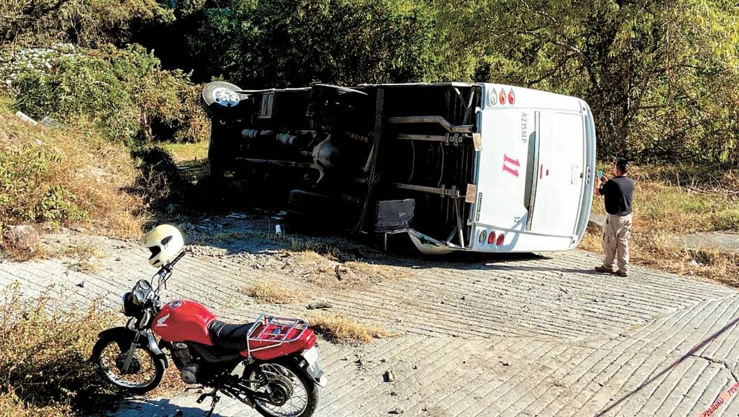 Temixco, MORELOS.- Al menos 10 personas resultaron lesionadas tras la volcadura de una ruta 11 en las calles de la colonia Punta Verde del municipio de Temixco.