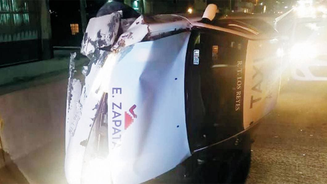 Un taxi del municipio de Emiliano Zapata, del sitio de Los Reyes, Nissan-Tsuru, placas A-596 LTN, acabó volcado, luego de que el chofer perdiera el control cuando circulaba por el Paso Express, a la altura de la colonia Satélite, en Cuernavaca.