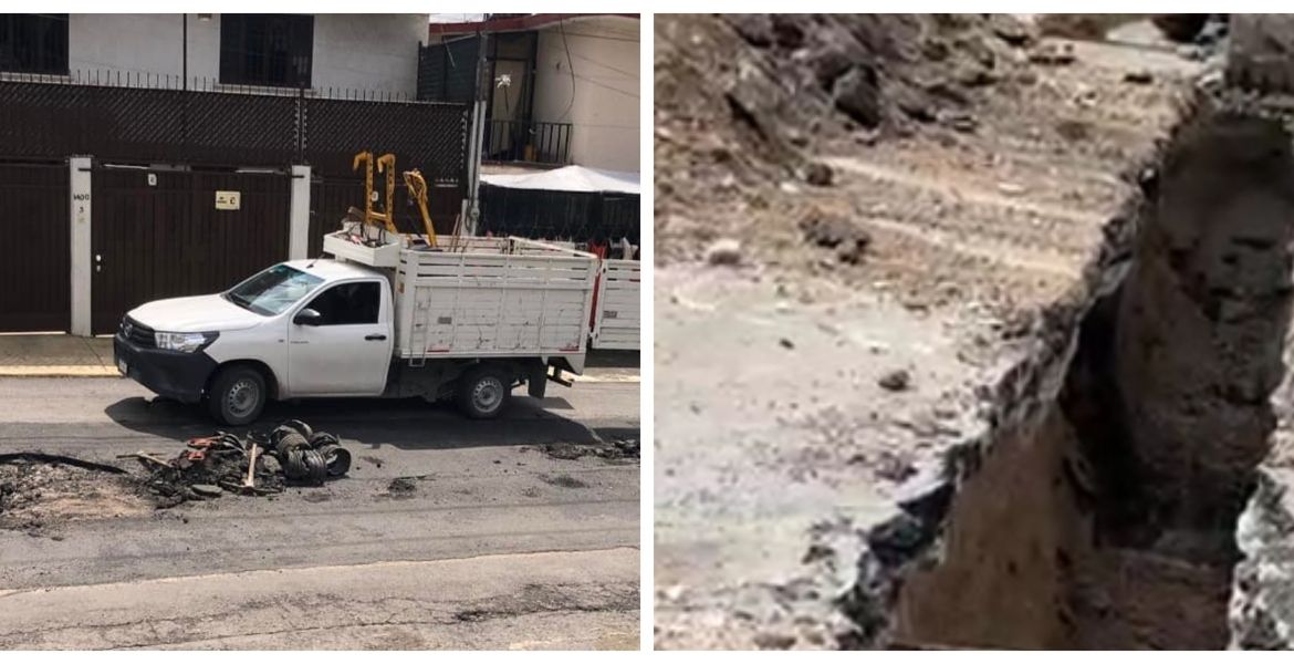 Los mismo habitantes dijeron que se percataron del socavón esta mañana, cuando al salir a sus trabajos, vieron un hoyo de 2 metros de profundidad, con mangueras rotas y el agua saliendo.