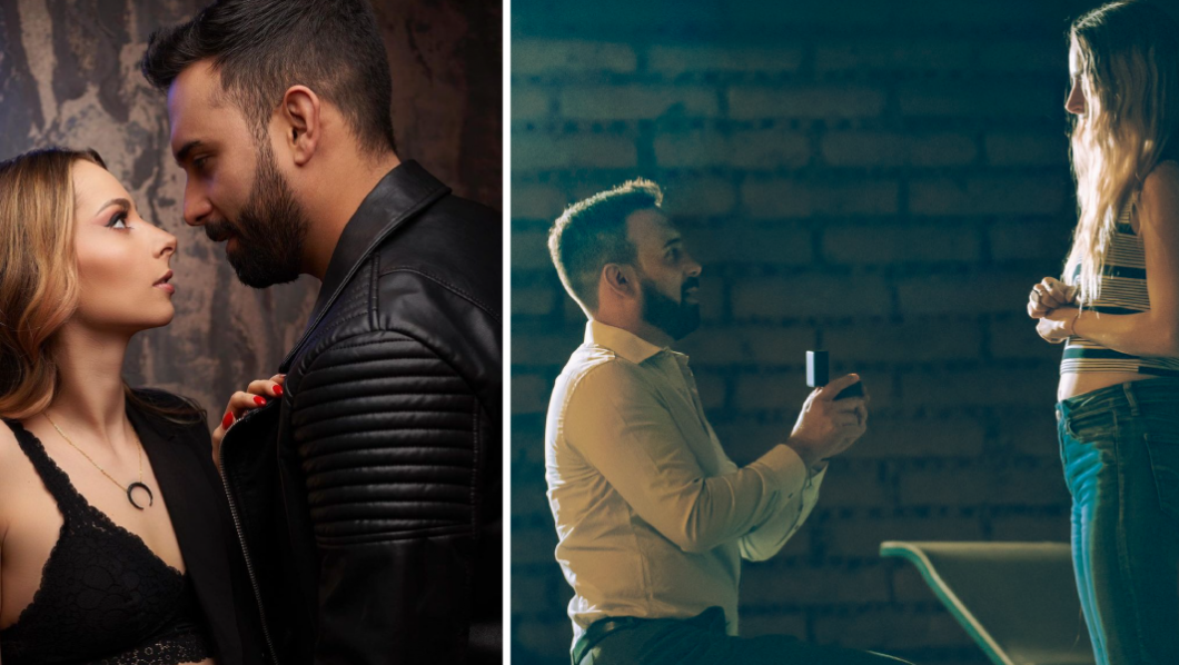 El romántico momento sucedió en medio de una romántica cena, mariachis y varias luces que decoraban el lugar, y por supuesto sus perritos no podían faltar en tan importante momento.