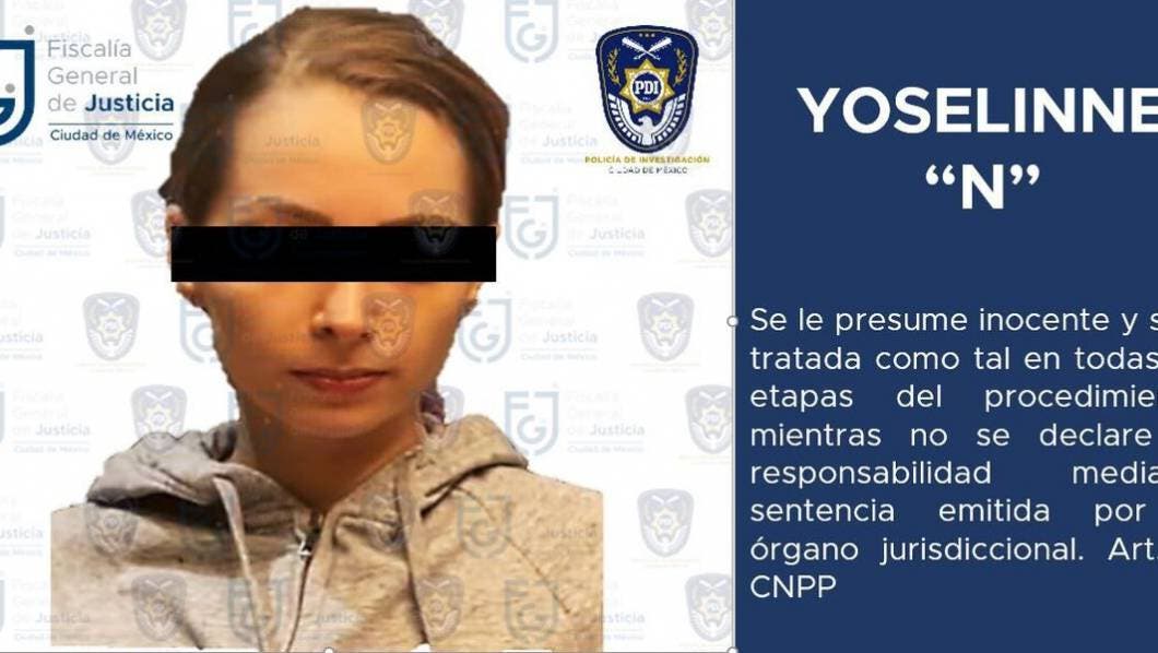 La Fiscalía General de Justicia de la Ciudad de México (FGJCDMX) publicó un comunicado y una foto, donde se aprecia a la youtuber Yoseline Hoffman luego que de fuera detenida.