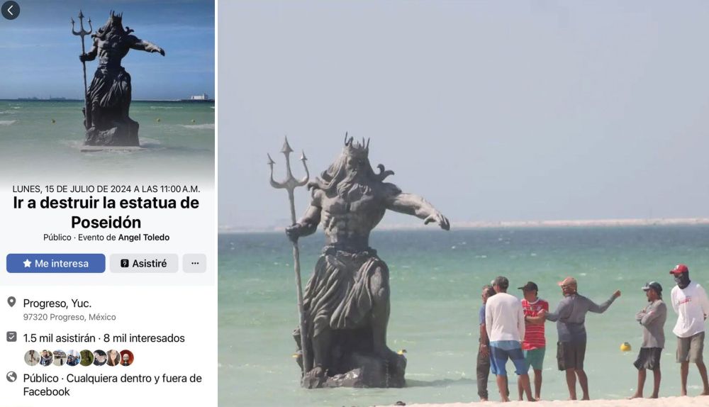 La estatua de Poseidón en Puerto Progreso, Yucatán, ha desatado una controversia que ahora involucra tanto humor como seriedad entre los habitantes locales. Lo que comenzó como una broma en redes sociales ha llevado a algunos residentes a organizarse para "destruir" la imagen del dios griego del mar, atribuyéndole fenómenos naturales adversos que afectan la región, especialmente en tiempos cercanos a la llegada del huracán Beryl.